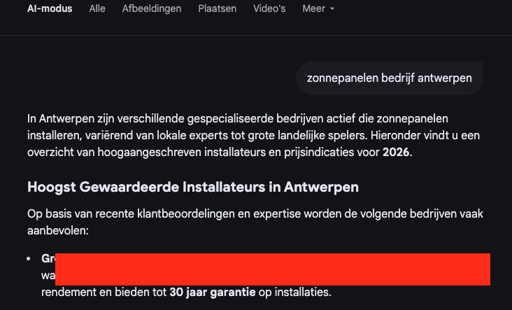Ook aan de slag met GEO om getoond te worden in Google als eerste antwoord zoals hieronder afgebeeld? Vraag een vrijblijvend gesprek via deze link.